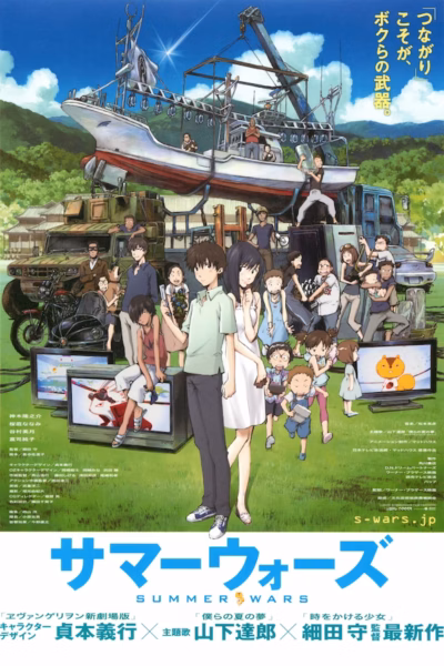 OZ es un mundo virtual al que millones de personas acceden desde cualquier dispositivo para prácticamente vivir una segunda vida. Puedes hacer compras, jugar, socializar y hasta manejar cosas serias como transacciones bancarias o sistemas de satélites. Todo gracias a su sistema de encriptación súper avanzado que hace casi imposible que te hackeen. Kenji Koiso tiene 17 años, es un genio de las matemáticas y trabaja part-time como moderador de OZ. Su vida da un giro inesperado cuando Natsuki Shinohara, la chica que le gusta, lo invita a pasar el verano en su casa familiar. Kenji acepta emocionado, pero hay un pequeño detalle que Natsuki "olvidó" mencionar: necesita que finja ser su prometido frente a toda su familia para el cumpleaños 90 de su bisabuela Sakae. Ya instalado en la enorme casa de la familia Jinnouchi, Kenji recibe un mensaje misterioso en su celular con un código matemático complejísimo. Como buen nerd, no puede resistirse y lo resuelve en cuestión de horas. Lo que no sabe es que acaba de desatar el caos absoluto. Resulta que una inteligencia artificial llamada Love Machine lo engañó para robar su cuenta de OZ y ahora está hackeando todo el sistema. Semáforos enloquecidos, satélites descontrolados, cuentas robadas masivamente. El mundo virtual y el real empiezan a colapsar juntos, y Kenji aparece como el principal sospechoso en todas las noticias. Ahora, junto con toda la peculiar familia Jinnouchi (incluyendo a Kazuma, el primo gamer de Natsuki que resulta ser el legendario King Kazma en OZ), tendrán que unir fuerzas para detener a Love Machine antes de que provoque una catástrofe mundial.
